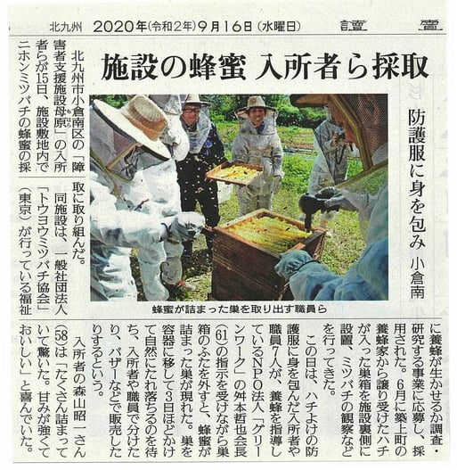 九州みつばち工房の活動について、毎日新聞さんに掲載していただきました。